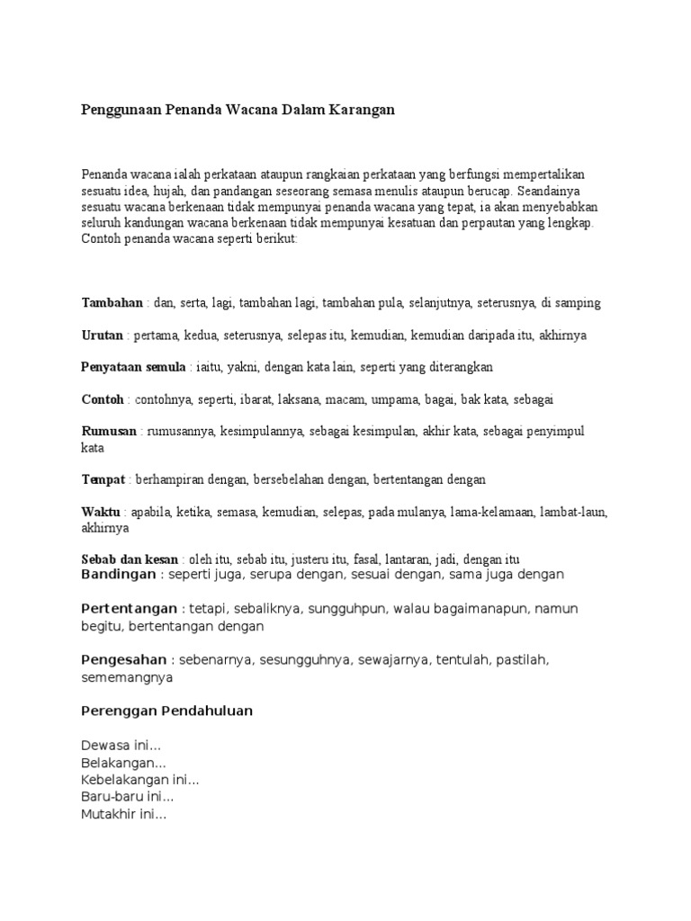 Okay many people who learn english as their secondary language struggle to use penanda wacana or discourse cause and. Penanda Wacana Karangan A. PENANDA WACANA UNTUK AYAT TERAKHIR PENDAHULUAN.
